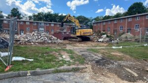 Heavy machinery was moving into Ocean Breeze Village in Dartmouth on Tuesday as the first day of demolition began.